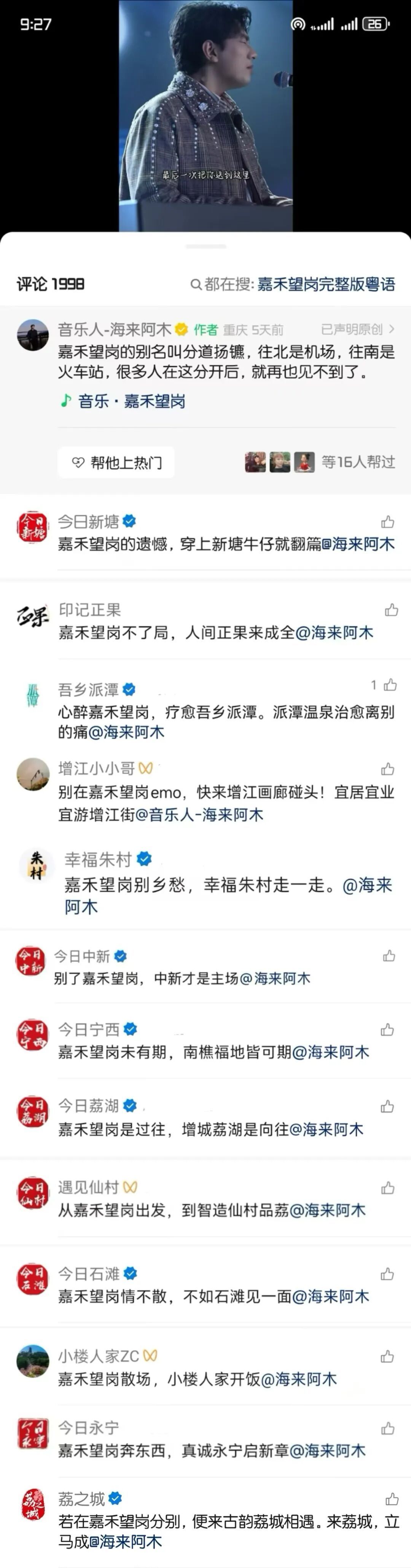 当全网都在分享与嘉禾望岗的故事时,增城13个镇街不约而同地涌进海来阿木的评论区接梗: